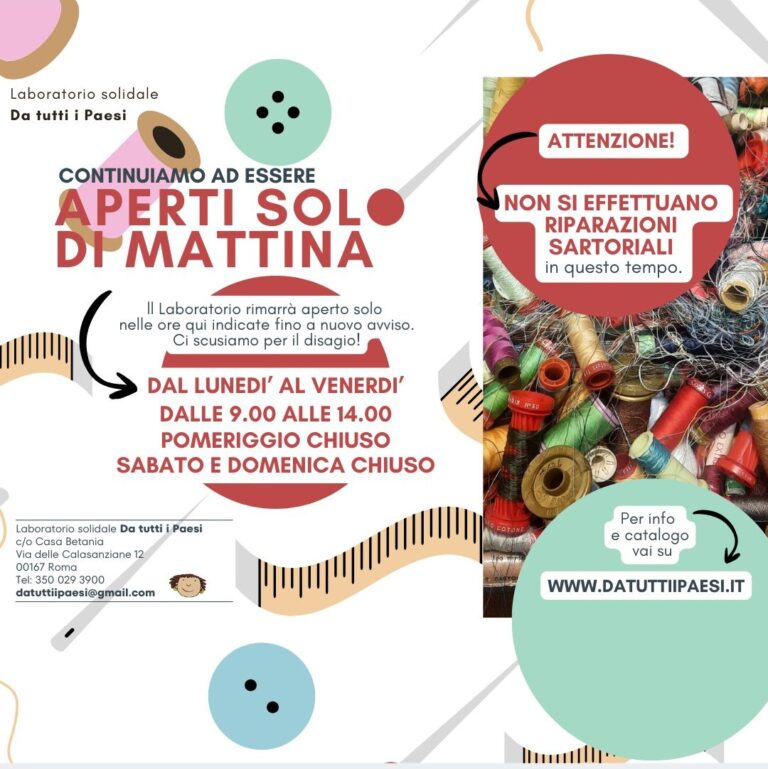 Da tutti i Paesi è un piccolo laboratorio artigianale nato nel 1996 per offrire a donne e madri immigrate e italiane in uscita da Casa Betania,