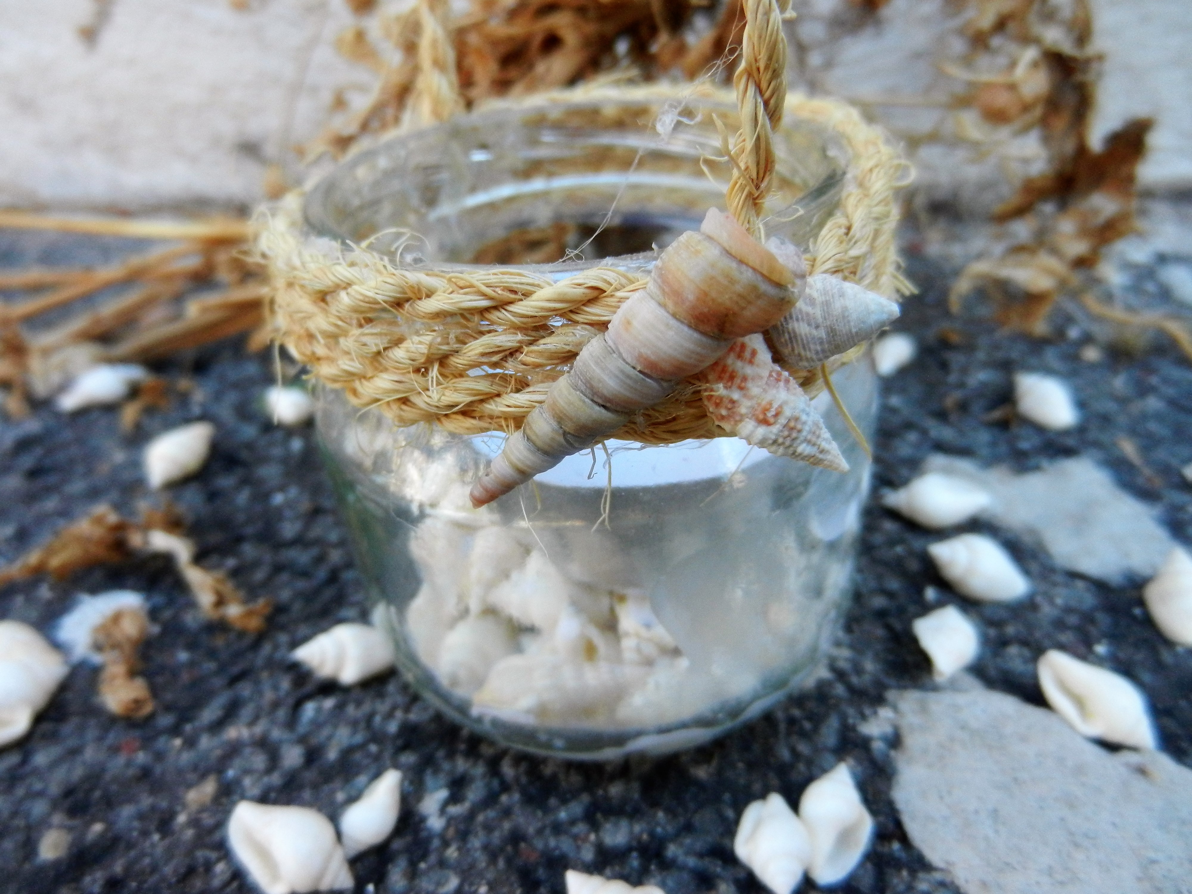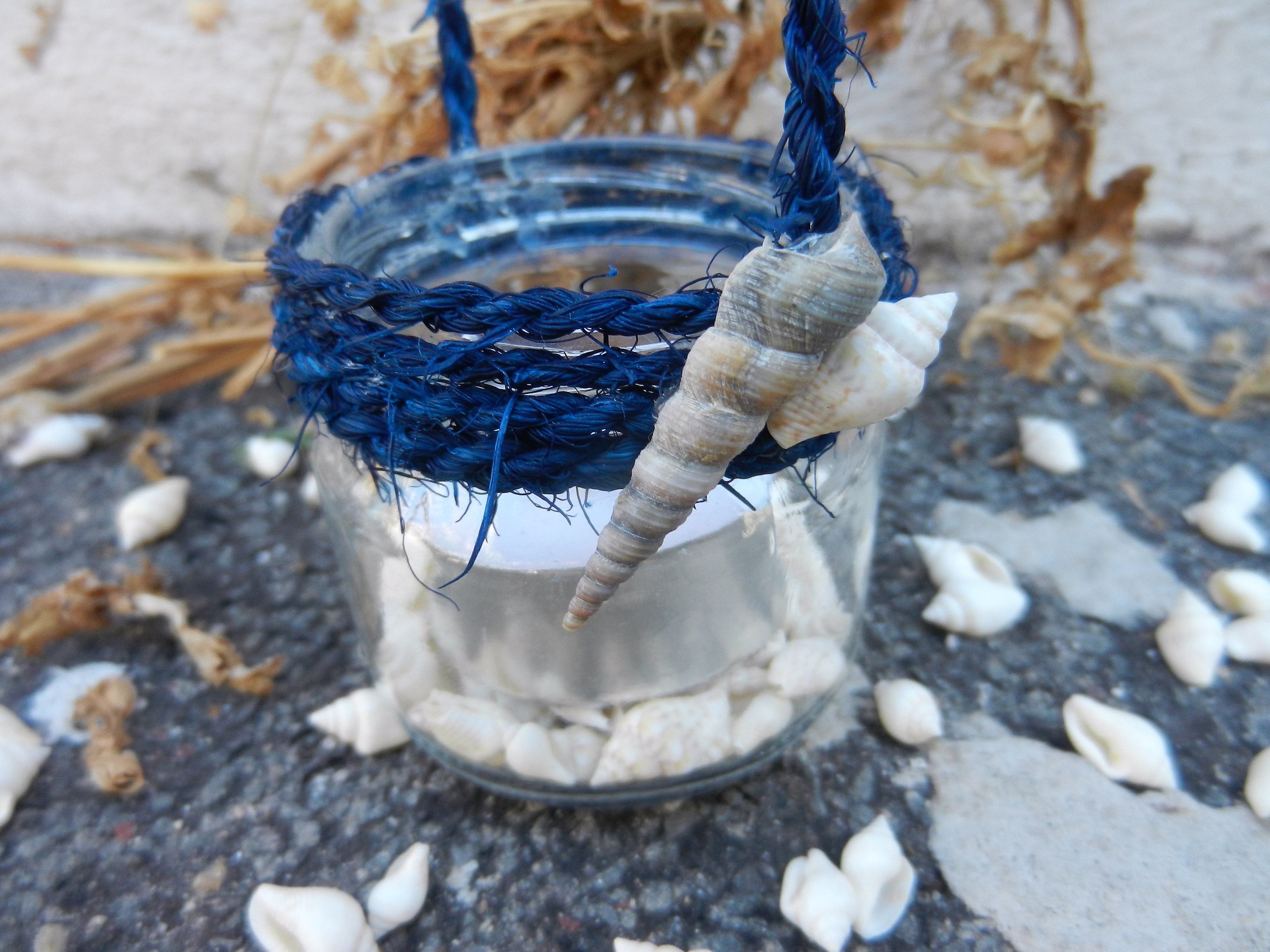 Decorati con il bordo in fibra di cocco di diversi colori (proveniente dallo Sri Lanka) e con piccole conchiglie, i portalumini si possono anche appendere, non solo appoggiare, grazie alla corda che fa da manico. Ideali per illuminare il balcone, la veranda o il giardino nelle fresche serate estive, al mare o in città.